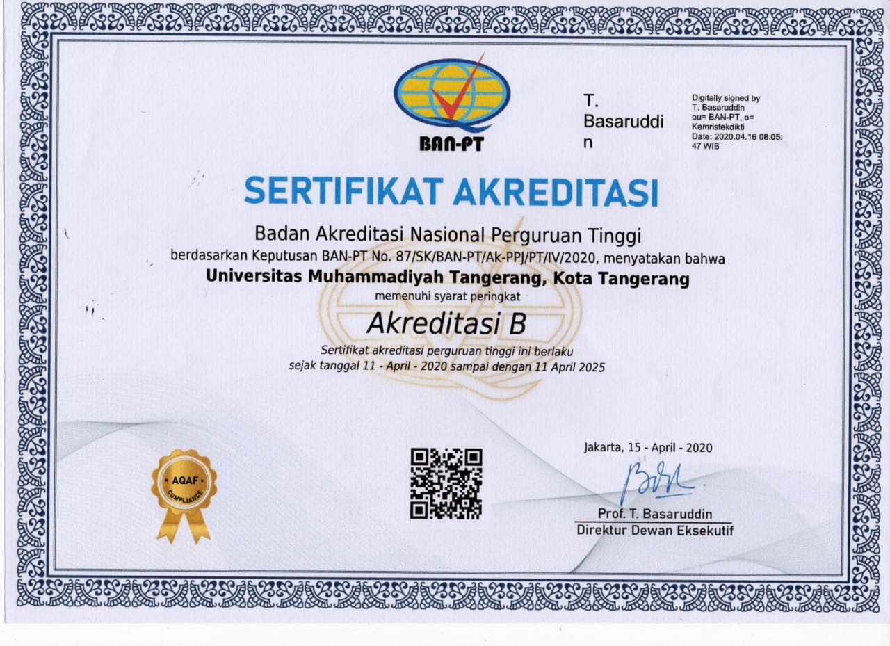 File sertifikat Akreditasi Universitas Muhammadiyah Tangerang dapat di download melalui link berikut: